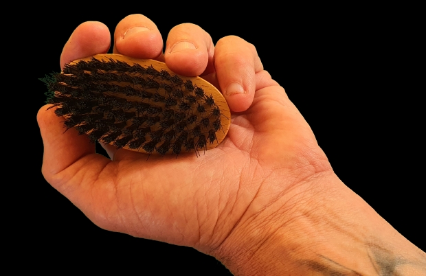 Boar Beard Brush – A good Boar brush and a natural moisturiser is a great start. According to beard owners, a good quality boar beard brush with short bristles is excellent for short new beards. The Boar Brush will gently tame the hair, gently exfoliate the skin and aid in distributing oils that can help improve beard growth.